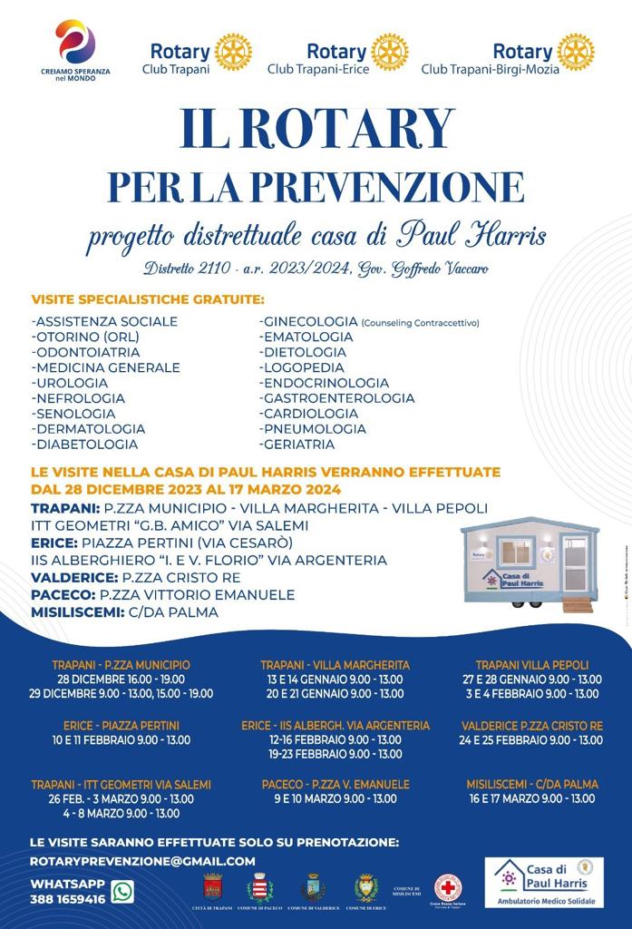 In data 28/12/2023 alla presenza del sindaco di Trapani Sindaco dei 3 Presidenti dei Rotary club di Trapani, Trapani -Erice e Trapani Biegi Mozia del Delegato Distrettuale Mimmo Strazzera,e del Coordinatore Casa di Paul Harris Area Drepanum Pietro Nastasi